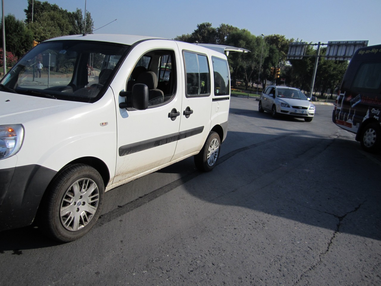route vers l'aéroport, rencontre avec une voiture turque, accident. Constat par la " polis ".